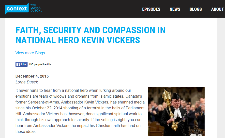 Lorna Dueck, Executive Producer and Host of Context with Lorna Dueck reflects on Kevin Vickers, public faith and the refugee crisis in her piece "Faith, Security and Compassion in National Hero Kevin Vickers." Read more